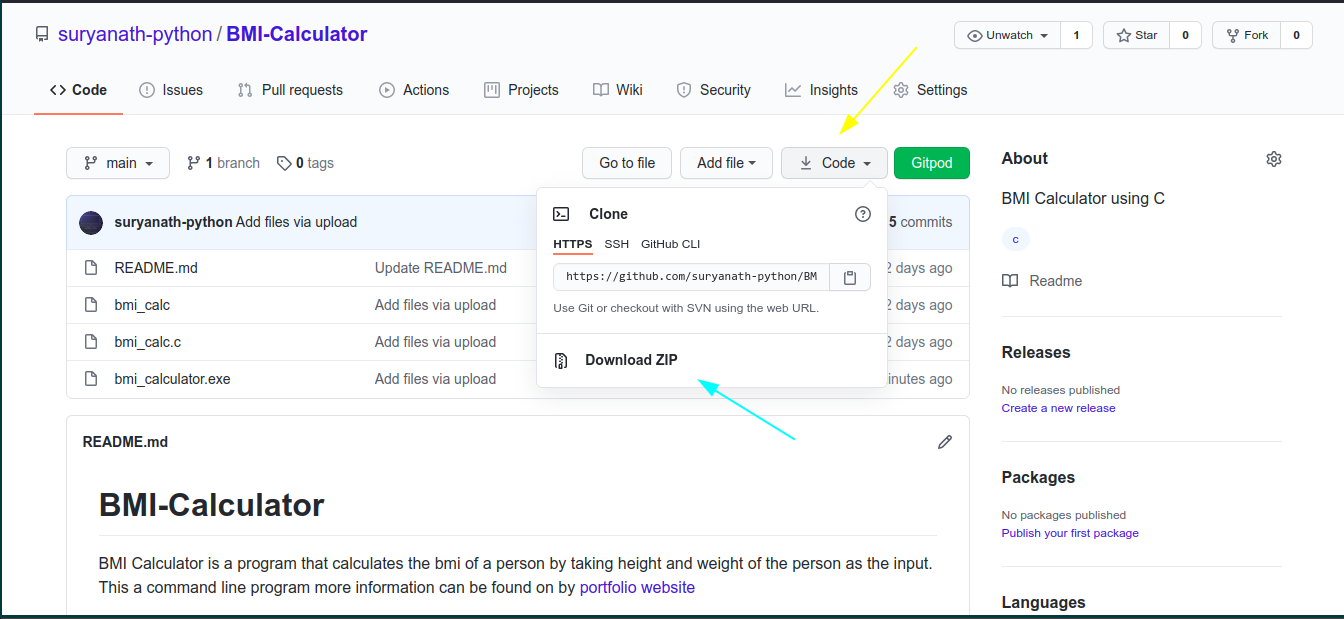 Now click the code button and download the file as a zip file. Extract the zip file and open the